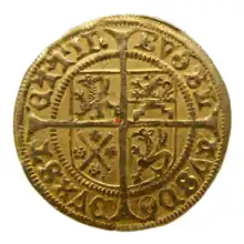 At the beginning of the 16th century, on the head of the red griffin on a white background, representing Pomerania-Stettin, was added the crown. Its design was most likely borrowed from the coat of arms of the city of Stettin (now Szczecin, Poland), which was the ducal residence since at least 1464. The crown was confirmed in the 1521 Imperial Coat of Arms Privilege. Bogislaw X also changed the colour of the background of said field, from white (silver) to yellow (gold). It was later returned to the white (silver) color, however, the yellow (golden) color remained the colour of the royal court.[1]
