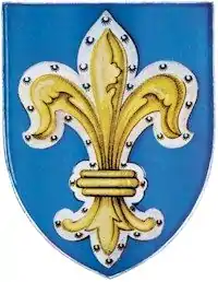 The Coat of arms of the Wakefield District was granted in 1990.[1] Between 1974 and 1990, the council did not have arms that represented its governance of the expanded metropolitan district of the City of Wakefield, and used the arms of the County Borough of Wakefield. Arms had been granted to the district's constituent city and towns, (Wakefield, Castleford, Horbury, Knottingley, Ossett and Pontefract) but an application to the College of Arms was made for a unifying achievement.