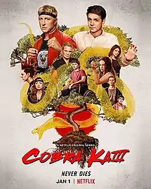 Following the season's release the series was nominated for Favorite Family TV Show at the 2021 Kids' Choice Awards on Nickelodeon, but the award was lost to Netflix's Stranger Things.[44] For the 2021 MTV Movie & TV Awards, the series received a nomination for Best Show while a fight scene in the final episode earned a Best Fight nomination.[45] Both awards were lost to WandaVision on Disney+.[46] At the 27th Screen Actors Guild Awards, the season picked up a nomination for Outstanding Performance by a Stunt Ensemble in a Television Series[47] which was lost to The Mandalorian, also on Disney+.[48] During the 1st Hollywood Critics Association TV Awards the series gained a nomination for Best Streaming Series, Comedy.[49] This nomination was ultimately awarded to Apple TV+'s Ted Lasso although Cobra Kai was granted an honorary award during the ceremony, known as the Legacy Award.[50] An Outstanding Comedy Series nomination was gained for the 73rd Primetime Emmy Awards.[51] Meanwhile, the finale episode, "December 19", picked up an additional three nominations from the 73rd Primetime Creative Arts Emmy Awards.[52] These nominations included Outstanding Sound Editing for a Comedy or Drama Series (Half-Hour) and Animation, Outstanding Sound Mixing for a Comedy or Drama Series (Half-Hour) and Animation, and Outstanding Stunt Performance.[53] Each of these awards were lost to Netflix's Love, Death & Robots, Ted Lasso, and The Mandalorian, respectively.[54] Three other nominations for The Show of 2021, The Drama Show of 2021, and The Bingeworthy Show of 2021 were all received for the 2021 People's Choice Awards,[55] which were lost to Loki, Grey's Anatomy, and Squid Game, respectively.[56]