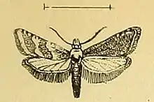 The wingspan is 9–15 mm. Adults are on wing from July to August.
