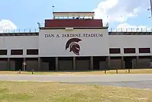 Named in honor of Dan A. Jardine, Jardine Stadium is the home of the Coffee High Trojans. Jardine Stadium was renovated in 2009 to include a new home seating section, ticket booths, renovated restrooms and concessions, and additional end-zone seating for the Coffee High Trojan Marching Band.