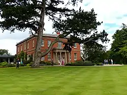 Cogshall Hall is a country house near the village of Comberbach, Cheshire, England. It was built in about 1830 for Peter Jackson.[1] A kitchen wing was added to the rear during the early 20th century. It is constructed in red-brown brick, and has a slate hipped roof. It is rectangular in plan, and has two storeys. Its architectural style is Georgian.[2] The entrance front has five bays and an Ionic portico.[1] There is a similar, smaller portico on the right side. The house is recorded in the National Heritage List for England as a designated Grade II* listed building.[2] The lodge to the hall was built at about the same time. It has a Tuscan porch with a pediment, and is listed at Grade II.[3] The architectural historian Nikolaus Pevsner refers to the lodge as being "ambitious".[4]