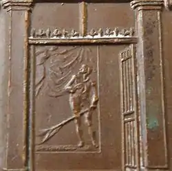 Peter Turnerelli (1774–1839) was responsible for the fine plaster mural of Coila looking down upon the poet at the plough whilst sheltering him with her cloak that adorns the back of the Dumfries Mausoleum.[11]