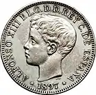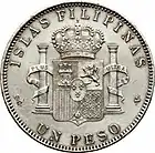 1 peso | 37 mm | 25.0 g | 90% silver | Edge lettering | King Alfonso XIII | Spanish coat of arms |