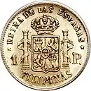 - In copper: 1⁄2, 1, 2 cuartos; 20 cuartos in a real and 160 cuartos in a peso.