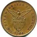 Copper-Nickel | Plain | Figure of a man seated beside an anvil holding a hammer and Mt. Mayon | Eagle atop stars-and-stripes shield; legend "United States of America"; mint date & mintmark | yyyy | 1903 1904 1905 1906 1908 1916 S 1917 S 1918 S 1919 S 1920 1921 1925 M 1926 M 1927 M 1928 M 1929 M 1930 M 1931 M 1932 M 1933 M 1934 M 1935 M | |