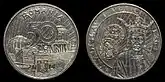 50 bani | 25 mm | 2.5 g | silver 83.5% | Milled | Value, year of minting | CAROL I REGE AL ROMANIEI ("Carol I, King of Romania") | 1884 | 19 December 1931 | |