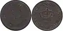 2 bani | 25 mm | copper | Value, year of minting, ROMANIA, coat of arms | CAROL I REGE AL ROMANIEI ("Carol I, King of Romania") | 1882 | ||||