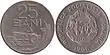 25 bani | 22mm | 3.38g | Nickel-plated steel | Value, agricultural scene, wheat | 1 November 1966 | ||||