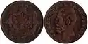 5 bani | 25 mm | copper | Value, year of minting, ROMANIA, coat of arms | CAROL I REGE AL ROMANIEI ("Carol I, King of Romania") | 1882 | ||||