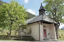 On the Bonnevaux territory, by the roadside about 5600 m below the pass, is the Chapelle Notre-Dame-des-Sept-Douleurs de Bonnevaux|or Our Lady of Sorrows registered in the cultural heritage's general inventory of the Rhône-Alpes region. Erected in 1844 by Rev. Girod, pastor of Bonnevaux, it was partially restored several times and fully restored in 1982. The bell of 1910 is called "the Virgin." .[2] The road was created in 1917 and redone in 1940; it has since been widened and tarred. Until 1964, the pass served as pasture for cows of the Abondance breed going to or returning from higher pastures. The large trough served not only for watering the cows but also for cooling the engines of cars that overheated going up the steep slopes. The road was plowed in winter on the Le Biot in 1964 and on the two sides in 1966.