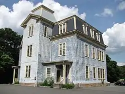 The Colburn School–High Street Historic District is a linear historic district encompassing the village center of Westwood, Massachusetts. It extends along High Street (Massachusetts Route 109) roughly between Conant Street in the north and Gay Street in the south. It is largely residential in character, with 37 houses, most of which date from the 18th to the mid-19th centuries. The rural character of the area is captured by a number of preserved 19th-century barns. The district also includes Westwood Town Hall, a 1910 Classical Revival building, and the 1874 Second Empire Colburn School.[2] The school was named for Warren and Dana P. Colburn who both attended the school.[3] They authored a book on arithmetic.[3] Prior to being named for them in March 1867, it was known as the Clapboardtrees School, the West Dedham School and District Number Eight.[3]