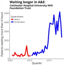 The trust was one of 26 responsible for half of the national growth in patients waiting more than four hours in accident and emergency over the 2014/5 winter.[9]