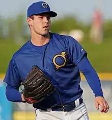 Ragans underwent Tommy John surgery in March 2018 and missed all of the 2018 season.[9] On May 14, 2019, the Rangers announced that Ragans had suffered a tear in the graft of his surgically repaired left elbow during his rehabilitation process. The tear resulted in a second Tommy John procedure which resulted in him missing the entire 2019 season.[10] Ragans did not play in 2020 due to the cancellation of the Minor League Baseball season because of the COVID-19 pandemic. Ragans opened the 2021 season with the Hickory Crawdads of the High-A East.[11] In June 2021, Ragans was selected to play in the All-Star Futures Game.[12][13] Ragans was promoted to the Frisco RoughRiders of the Double-A Central on July 18, after going 1–2 with a 3.25 ERA and 54 strikeouts over 44+13 innings for Hickory.[14] He finished 2021 after posting a 3–1 record with a 5.70 ERA and 33 strikeouts over 36+13 innings for Frisco. Ragans returned to Frisco to open the 2022 season, going 5–3 with a 2.81 ERA and 65 strikeouts over 51+13 innings, before being promoted to the Round Rock Express of the Triple-A Pacific Coast League on June 14.[15] Over 8 starts for Round Rock, Ragans went 3–2 with a 3.32 ERA and 48 strikeouts over 43+13 innings.[16] He was named the Texas Rangers 2022 Nolan Ryan Pitcher of the Year.[17]