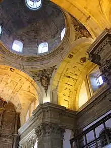 The church was built on a Jesuitical style, inspired by the Gesu de Roma, mother church of the Jesuits. The building was built on a Latin-cross plant with short arms. The central vessel has a barrel vault resting on an ionian entablature, which is decorated with a geometric and simple border.[1][5]