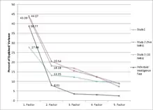 Scree plot showing percent of explained variance for the first factors in Woolley et al.'s two original studies in 2010[17]