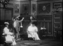 5. Other view of the man's parlour. A college friend pretends to be the sister, creating various quid pro quo with the fiancée and her family.[1]