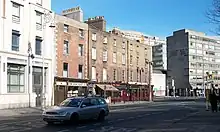 The Royal Irish Institution, an organisation promoting fine arts, was based at No.5 College Street. The building was constructed by Frederick Darley in 1829. It was demolished in 1866 and replaced with the Provincial Bank of Ireland, constructed by William George Murray. The building was redeveloped into the Westin Hotel in 1998, which extends onto Westmoreland Street. This involved demolishing four other buildings along College Street.[2][10] Conservationists attempted to block this redevelopment and preserve the buildings; in the event, the later Victorian shop facades were preserved.[11]