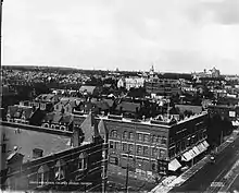 Streetcar service extended as far west as Dufferin by 1889, and (via Dundas Street) to High Park by 1893. Sunday operation of the line to High Park did not begin until 1897, after a citywide plebiscite was held on the issue of Sunday streetcar operation. The streetcar led to the development of residential sub-divisions on both sides, with street frontages actually empty. The frontages were used for billboards, with development on the street only filling up the lots on both sides by World War I, although some vacant lots existed into the 1920s.[4]