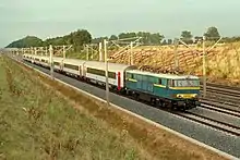 In the 1960s and 1970s, several Trans Europ Express train pairs ran on the Cologne–Aachen line. Diesel railcars of class VT 11.5 (e.g. Hamburg–Paris) and trains with French TEE coaches were used. The VT 08 class was used for long-distance express (F) trains. In addition, international expresses hauled by Belgian steam locomotives ran to Cologne. Electrification was completed in 1966, and from then on electric locomotives were mostly used for passenger transport. Mainly class 110 and Belgian multi-system locomotives of class 16 and later also class 18 ran in long-distance transport and initially class 141 were operated in local transport. The new class 184 multi-system locomotives delivered in the autumn of 1966 (also marketed as Europalokomotiven—"European locomotives") were extensively tested in Germany–Belgium traffic, but were only rarely used later because the locomotives often failed due to frequent strong voltage fluctuations in the Belgian overhead line, so from 1971 they were no longer used for passenger services to Belgium and were relocated to the Saarland in 1979.[68] The international daytime passenger services were therefore largely operated from the 1970s to the 1990s with Belgian multi-system locomotives. Locomotives for freight transport were changed in Aachen-West and locomotives for overnight express trains were changed in Aachen Hbf.