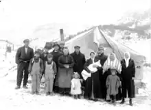 On the morning of April 20, 1914, the day after the Eastern Orthodox Church's Easter Sunday and after months of increased tension between the armed factions, the Ludlow Massacre occurred.[47] The withdrawal of the majority of the National Guard had left only two companies of troops in the strike area, with these soldiers spread across several encampments at Berwind, Ludlow, and Cedar Hill.[48][49] On Sunday, 19 April, it was reported that a group of union-aligned women playing baseball at Ludlow exchanged insults with National Guardsmen, one of whom is reported as saying to the women, "Go ahead, have your good time to-day, and to-morrow we will get your roast."[34] On the morning of 20 April, Tikas was summoned by soldiers claiming a woman sought to speak to her husband, a supposed resident of the Ludlow Colony. Tikas refused the initial invitation to meet in the soldiers' tent. Major Patrick Hamrock, the Irish-born leader of the "Rocky Mountain Sharpshooters" and a veteran of the Wounded Knee Massacre, persuaded Tikas to meet at the Ludlow train stop. Tikas told his agitated fellow Greek strikers to remain calm.[lower-alpha 9][18]: 213 [34]