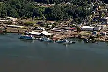 In the early 1970s, a new fundraising campaign was launched for a planned move to a newly constructed, larger facility on the city's waterfront.[3] As well as providing more space for the growing collection of artifacts, the move would allow the museum's buildings to be adjacent to some of the historic ships moored in Astoria, such as the Lightship Columbia.[3] Construction of the new facilities began in May 1975[8] and cost $2.75 million.[13] The museum moved to its new waterfront site in May 1982. The new building provided 37,000 square feet (3,440 m2) of space, on a 2.5-acre (1.0 ha) site.[8]