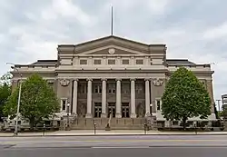 The orchestra was founded in 1941 and presented concerts in Franklin County Memorial Hall (now the Franklin County Board of Elections building). Originally the orchestra was semi-professional with all of its principal chairs occupied by full-time professional players. Many of these musicians were imported to Columbus from Chicago, Cleveland and elsewhere due to a shortage of local players during World War II. In 1946, it became a full-time professional orchestra, the first in Columbus.[1] In 1949 the fledgling eight-year-old orchestra was disbanded by its board of trustees due to an inability to continue raising the funds necessary to produce its concerts.[2]