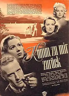 Come Back to Me (German: Komm zu mir zurück) is a 1944 German comedy film directed by Heinz Paul and starring Charlott Daudert, Natasa Gollová and Margarete Haagen.[1] It was made at the Barrandov Studios in Prague.[2] Location shooting took place around the Wörthersee in Carinthia.