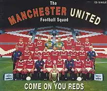 "Come on You Reds" is a song recorded by the 1994 Manchester United football squad, written and produced by the rock group Status Quo. It first entered the UK Singles Chart on 30 April 1994 and remained there for a total of 15 weeks, reaching a two-week peak of number one. The song is the only (as of 2018) club side football single to reach number one on the UK chart; however, "Back Home" (in 1970) and "World in Motion" (in 1990) both topped the charts for the England national side.[2] The song also reached number one in Denmark and became a top-10 hit in Ireland and Norway.