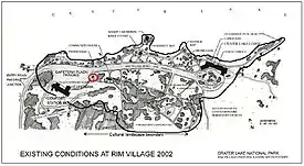 - ↑ "Rim Village", National Park Service, United States Department of Interior, May 2001.