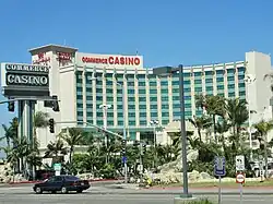 Commerce Casino is a cardroom located in the Los Angeles suburb of Commerce. With over 240 tables on site, Commerce Casino is the largest cardroom in the world.[2] Established in 1983, the casino accounted for 38% of Commerce's tax revenues for the 2006-2007 fiscal year.[3] As of 2016, the casino was providing $22 million a year in licensing fees to the city.[4]