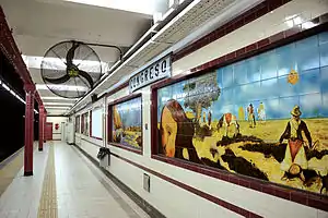 Congreso is a station on Line A of the Buenos Aires Underground.[1] It lies at the intersection of Rivadavia and Callao avenues, in the neighborhood of Balvanera. It is located just metres from the Palace of the Argentine National Congress. The station belonged to the inaugural section of the Buenos Aires Underground opened on 1 December 1913, which linked the stations Plaza Miserere and Plaza de Mayo.[2]