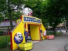 Kiddieland is a small, enclosed section of the park, containing 13 rides specifically for children. It is located behind the Carousel and across from the Witch's Stew and Trabant. It can be accessed from either behind the carousel, or the main entrance across from the Witch's Stew. The original Kiddieland restrooms were destroyed by a fire in 2010. They have since been rebuilt.