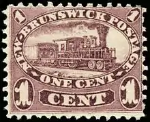 Meanwhile, the line between Hampton, New Brunswick and Saint John opened in 1859 and the remaining section between Moncton and Hampton was opened in 1860. In 1860, the colony of New Brunswick issued a postage stamp which illustrated an E&NA engine. The stamp was commissioned by the postmaster and one of the railway's directors, Charles Connell.[1]