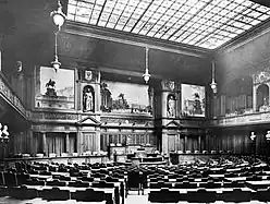 The 180 members of the first (upper) chamber of the Prussian Parliament, later called the House of Lords (Preußisches Herrenhaus), were men who had been citizens for at least five years and were over the age of 40. They were indirectly elected for 6-year terms by male Prussian citizens who were at least thirty years old and paid an "annual class tax of at least eight thalers, or proved ownership of real estate worth at least 5,000 thalers, or had an annual income of five hundred thalers".[12] Provincial, district and county representatives served as electors (Art. 63 / _).