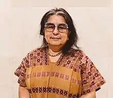 Consuelo Jiménez Underwood (born 1949 in Sacramento, California)[1] is an American fiber artist, known for her pieces that focus on immigration issues. She is an indigenous Chicana currently based in Cupertino, California.[2] As an artist she works with textiles in attempt to unify her American roots with her Mexican Indigenous ones, along with trying to convey the same for other multicultural people.[3]
