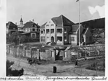 The U.S. established a consulate in Qingdao on September 16, 1906. Initially, the consulate was located in the U.S. Presbyterian residence on Bismarck Street (now Jiangsu Road).[2] In 1912, the consulate moved to the most recent location at 1 Yi Shui Road. The building, constructed between 1911 and 1912, was initially the property of the German architect Paul Friedrich Richter.[3] In 1919, on the advice of the U.S. Consul in Jinan, Clarence E. Gauss, the Qingdao consulate merged with the Jinan Consulate, although this was soon reversed.