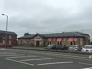 The Italianate station building, designed by Charles Lanyon, is made of sandstone. After closure it lay derelict until 1977, having been listed the year before. Today, it is used as a Chinese restaurant. Two further NCC railway buildings survive in Cookstown, with the red-brick Stationmaster's house built in 1910 and 1897-built lamp shed also being listed.[2]
