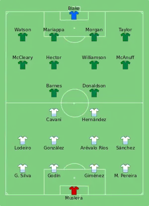 The two teams had met in nineteen previous encounters, the latest being a 2011 Copa América group stage match won by Uruguay with a lone goal by Álvaro Pereira.
