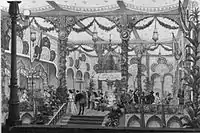 Built by Georg Carstensen, founder of Tivoli Gardens, Casino was originally envisioned as a "Winter Tivoli" with bazaar, promenade concerts and soirées. Carstensen financed the project through the sale of shares. In November 1845, he had raised 200,000 Danish rigsdaler.[1] The building was designed by H. C. Stilling who had also worked for Carstensen during the establishment of Tivoli Gardens. The entertainment venue opened on 22 February 1847.[2]