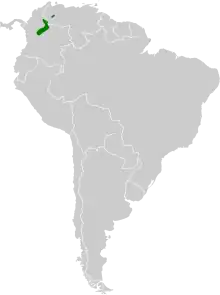 The coppery-bellied puffleg is found from the Andes of northwestern Venezuela's Mérida state south and west in the Eastern Andes of Colombia as far as Cundinamarca Department. It mostly inhabits open landscapes such as the edges of montane forest, shrubby slopes, and the lower reaches of the páramo zone, though it also occurs inside humid forest. In elevation it ranges between 2,000 and 3,000 m (6,600 and 9,800 ft) but is most abundant above 2,500 m (8,200 ft).[5]