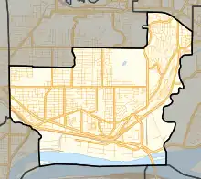 The Coquitlam–Maillardville district encompasses most of land of the City of Coquitlam except for the city centre, Westwood Plateau, and a small corner in the northwest that belongs to the Port Moody-Coquitlam electoral district. Coquitlam–Mallardville is bounded by North Road, the Brunette River, and Braid Street to the west; the Fraser River to the south; and the Coquitlam River, and Westwood Street and its extension south from Kingsway Avenue to the river, to the east. The north and northwest boundary follows the CPR tracks from Westwood Street to just north of Viewmount Drive. It then goes south along Viewmont and continues straight, to the end of Brookmount Road. From here it goes west along Brookmount Road and Brookmount Avenue, north of Fresno Place, Harbour Drive, and Bent Court to Gatensbury Avenue, then south to Foster Avenue, west to Blue Mountain Street, south to Austin, and west to North Road.[1]
