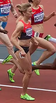 Corinna Harrer (born 19 January 1991) is a German middle distance runner. She was born in Regensburg.[1] At the 2012 Summer Olympics, she competed in the 1500 metres.[1] She won a silver medal at the 2013 European Athletics Indoor Championships in the 3000 metres.[2]