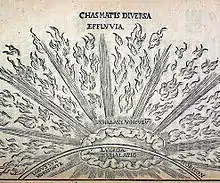 As an astronomer, Gemma is significant for his observations of a lunar eclipse in 1569 and of the 1572 supernova appearing in Cassiopeia, which he recorded on 9 November, two days before Tycho Brahe, calling it a "New Venus."[1] With Brahe, he was one of the few astronomers to identify the Great Comet of 1577 as superlunary. Gemma is also credited with publishing the first scientific illustration of the aurora, in his 1575 book on the supernova.[2]