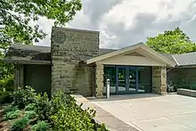 Noyes Lodge was originally built in 1958 as a dining hall. It contained the Pancake House and the Pick-Up, a small grocery, in the 1970s and ’80s. It also contained the Language Resource Center.[9] In 2018, Noyes was completely renovated to be the home of the Tang Welcome Center, the first official welcome center at Cornell.[10] The center, which overlooks Beebe Lake, contains space for exhibitions about the University's history and mission, and serves as a gathering point for visitors and the starting point for campus tours.[10]