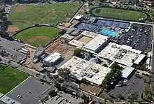 The school was founded in 1962. In the mid 1970s, the school went through an extensive design process to develop its media center.[4] The Marian Bergeson Aquatic Center, named for state senator Marian Bergeson who was from Newport Beach, opened in May 1990 at a cost of $1.75 million.[5] In March 2015, a 29,000-square-foot (2,700 m2) performing arts center was finished. The center cost $16 million and seats more than 360 people.[6][7] Newport-Mesa Unified School District got approval for construction of the Enclave, a 38,000 sq. ft structure consisting of two buildings(one 3-story and one 2-story) connected by passages for 7th and 8th graders. It was designed by Dougherty & Dougherty Architects and built by KPRS Construction, and was completed by June 2014 and cost $23.2 million.[8][9][10] Construction began in June 2019 on a $14.6 million renovation project to build a new track and two lighted artificial turf sports fields, which were completed by January 2021. The track bleachers have a seating capacity of 664, and the back field has portable bleachers that can accommodate 200 spectators.[11] As part of a two-school $5 million construction project with Ensign Intermediate School, 8-foot security fences were built around the perimeter of the school and were completed by January 2021. The project also included a new entry structure adjacent to the pool with a school sign and LED board, finished by March 2021.[12][13][14]