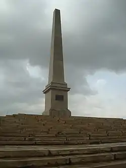 The Coronation Memorial erected as an obelisk in the sprawling Coronation Park is made of sandstone. It is erected over a high raise square plinth with steps on all four sides. The memorial has been erected at exactly the same location where all the three British Durbars were held in the past. The inscription on the Memorial testifies the final Durbar event and states:[2][3][11]