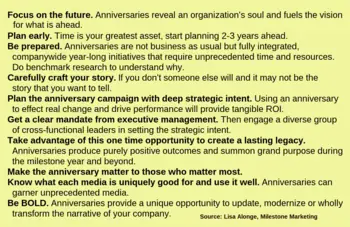 An anniversary can advertise a firm's staying power and longevity. A report in The New York Times explained the marketing logic: