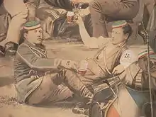 The revolutionary year of 1849 also represents the endowment year for the – as of today existing – Corps Rhenania IV. In renunciation to sectionalism and a system of mini-states in Germany the members of Nassovia dissolved their Corps by January 15, 1849 and endowed on the same day a new Rhenania IV. Constitution, motto ("Virtuti semper corona!") and tradition were inherited from Nassovia. In the following years their recruitment area extended over the whole of Germany. Also students from European foreign countries (Switzerland, Greece, England, etc.) and from overseas (United States, Canada, South Africa, etc.) became active at Rhenania. Corps Rhenania is member of the Kösener Senioren-Convents-Verband (KSCV) since its endowment in 1848. The period during the German Empire can be accounted for the greatest time of prosperity for the Corps by far. Contrary to the SC-Corps Saxo-Borussia, Guestphalia and Vandalia, which were dominated by East-Elbian, Hanoveranian and Mecklenburgian capacious landowners and civil servants, Rhenania developed during this time frame to the Corps of the large scale industrials and the capital with the focal point of recruiting in the areas of Rhine-Ruhr, Frankfurt, Hamburg, and in the mid-German industrial zone. Rhenania therefore belonged to the Corps' which were perceived as extraordinary exclusive. The first printed Corps chronicles (semester reports) were sent out to the external members in 1875. The last living Alte Herren of Rhenania II acknowledged the existing Corps in 1882 as the legitimate successor of the old Rhenania of 1802/20. Living members of Rhenania II and Nassovia II were integrated in the Corps. The German novelist Theodor Fontane used the death of Rhenanian Emil Hartwich (1843- 1886; district judge in Düsseldorf) during a duel with Baron Léon Armand von Ardenne as guideline for his novel Effi Briest in 1894. The active Corps was suspended during 1914-1919 due to World War I. An effect of politicization of the student body during the early days of the Republic of Weimar was less significant among the Corps, as the SC of Heidelberg had chosen a self-imposed isolation and bulk headed off against the influence of the rest of the student body. Also the takeover of the National Socialists (Nazis) did not have any influence on the Corps operation in the beginning. On September 8, 1935 the termination of the association (KSCV) was inducted by the Head of the Reichskanzlei, Hans Heinrich Lammers by excluding the KSCV from the "Gemeinschaft studentischer Verbände" (Community of Collegiate Associations). After the finalization of termination of the KSCV also Corps Rhenania decided to suspend. Participation at the Heidelberger SC-Kameradschaft (SC-Comradeship of Heidelberg) "Axel Schaffeld" was retained and limited financial contribution; the participation was ceased by the end of World War II in 1945. Different from other university cities there were no personnel or organizational interfaces between comradeships' and Corps.