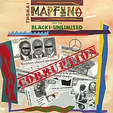 Corruption is an album by the Zimbabwean musician Thomas Mapfumo (credited with his band, the Blacks Unlimited), released in 1989.[2][3] The album criticized the government of Robert Mugabe.[4][5] Mugabe's displeasure with the criticism eventually forced Mapfumo into exile, and Mapfumo's music was barred from Zimbabwean radio.[6][7][8] The title track was discussed in the Zimbabwean parliament, around the same time as several government officials were indicted as part of a smuggling ring.[9]